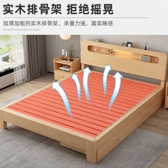 英环实木床双人1.8米现代简约1.5米家用主卧大床出租屋床1.2m单人床