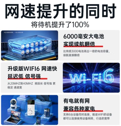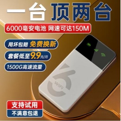 随身wifi可移动无线wi-fi6免插卡【无需预存】无限制便携式4G高速随行网络通用流量2024款5GHF 6000毫安大电池+续航翻倍全国通用