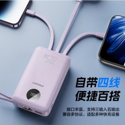 充电宝自带四线22.5W快充小巧便携宿舍移动电源20000毫安大容量可上飞机适用苹果16小米华为P70紫