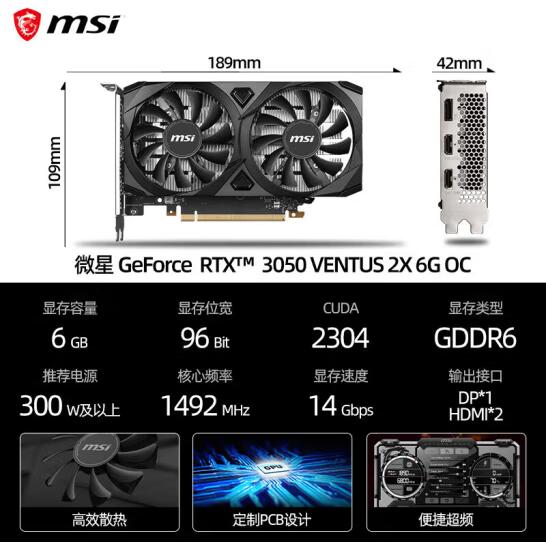 微星RTX 4060Ti 8G/4070SUPER 12G万图师魔龙姬电竞游戏游戏台式显卡 微星 RTX3050 万图师 OC 6G